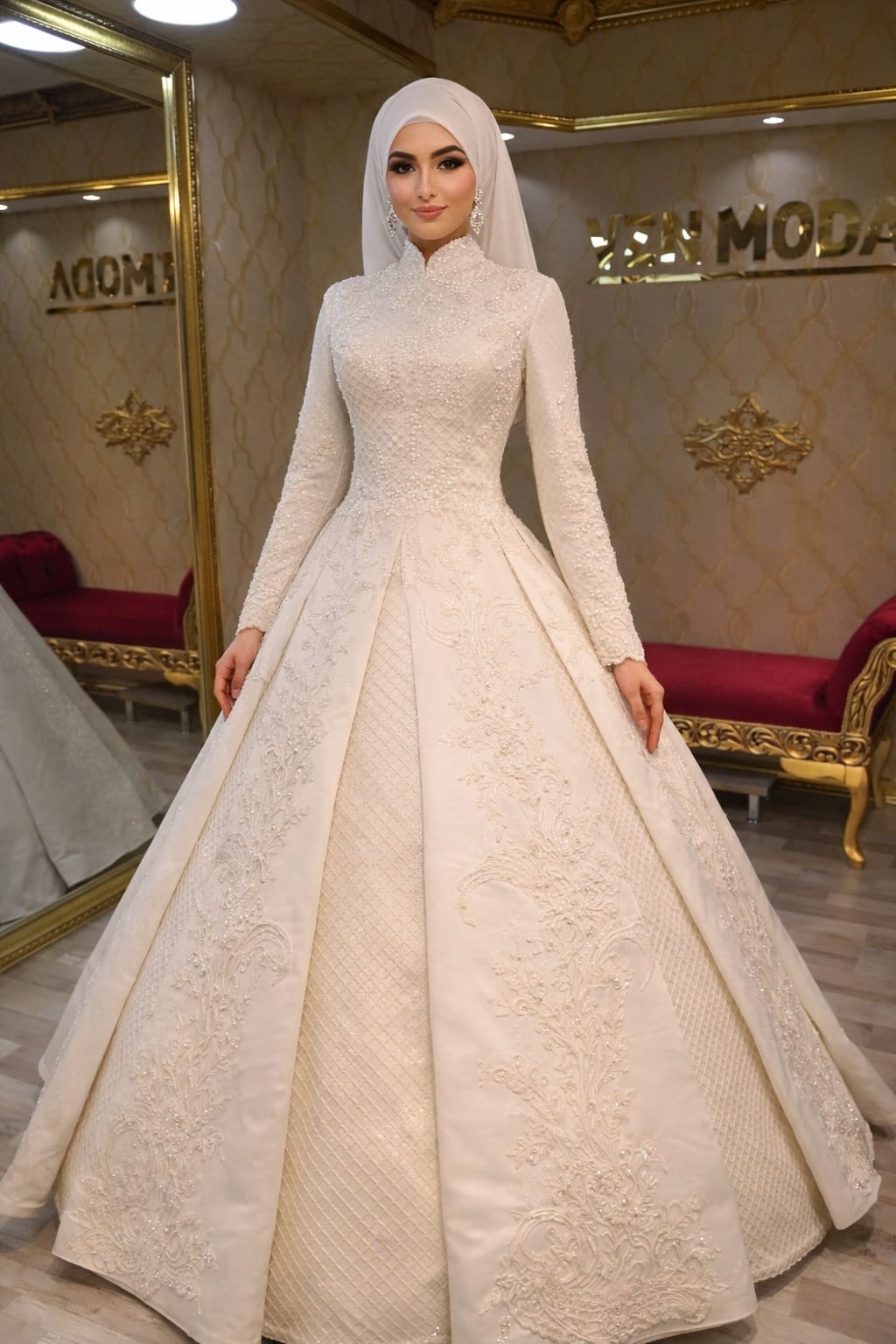 Aslında saten ve nakış işleme uyumu, gücün ve zarafetin en evrensel sembolüdür; dolayısıyla bu modelle hem modası geçmeyecek hem de etkileyici bir duruş sergileyebilirsiniz. Çünkü VZN Moda, her detayı titizlikle hazırlanan bu tasarımla, tesettürlü gelin adaylarına hayatlarının en özel başlangıcında eşlik edecek o “vakur ve aydınlık” görünümü sunmayı hedefler. Sonuç olarak, satenin büyüleyici etkisini teninizde hissetmek ve Ayşen modelin karizmatik atmosferiyle iz bırakmak istiyorsanız, bu tasarım koleksiyonumuzun en nadide parçalarındandır. vznmoda.com/gelinlik/