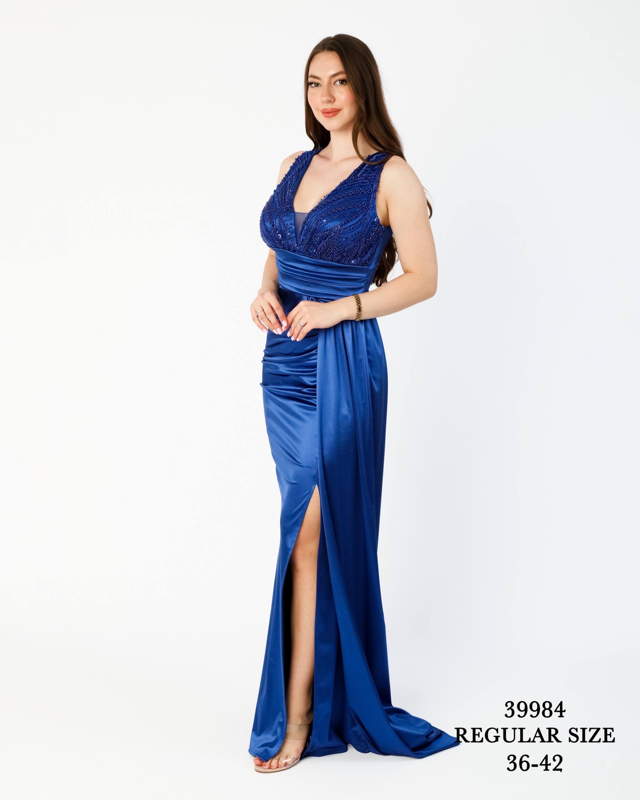Model: Feris Model Saten Saks Mavisi Abiye Elbise.