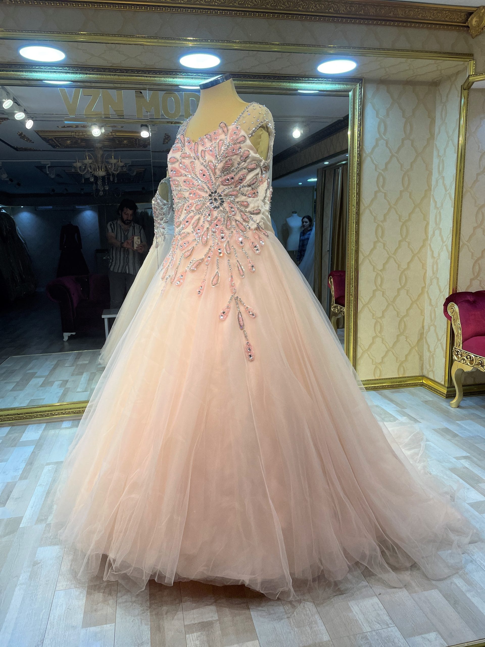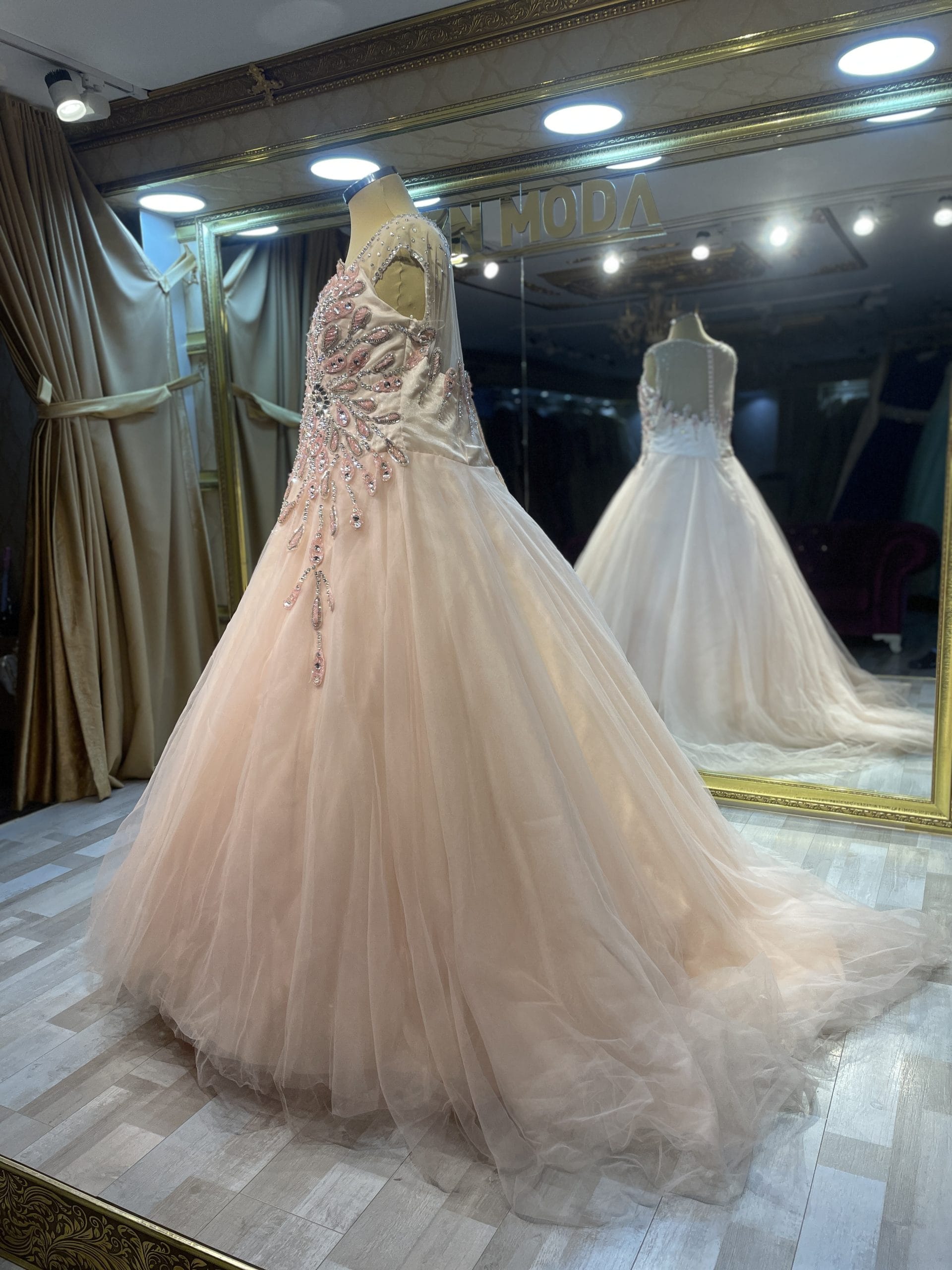 Büyük Beden, Elagance Hayal Tül, A kesim, Somon Renk, Nişanlık,
