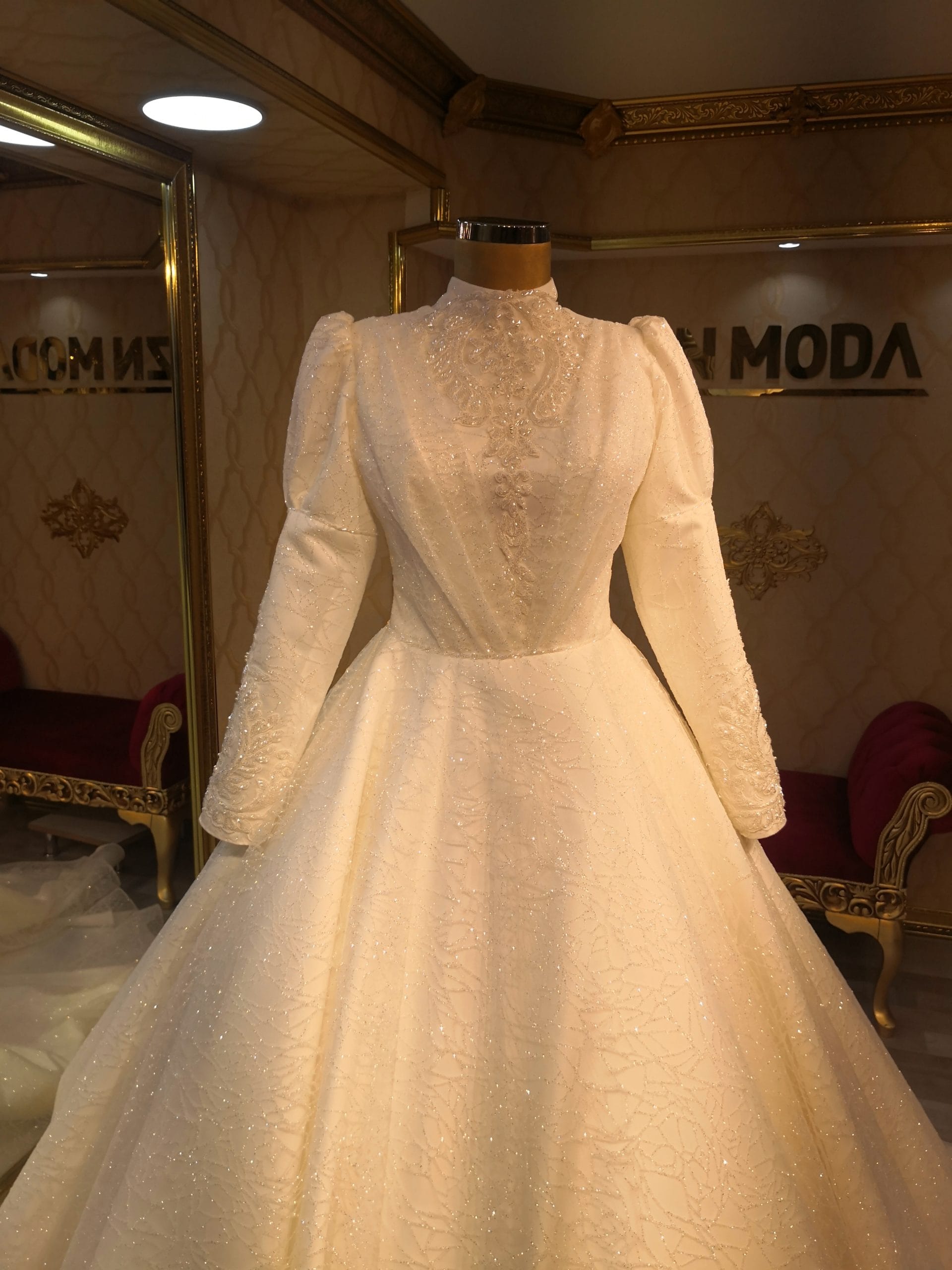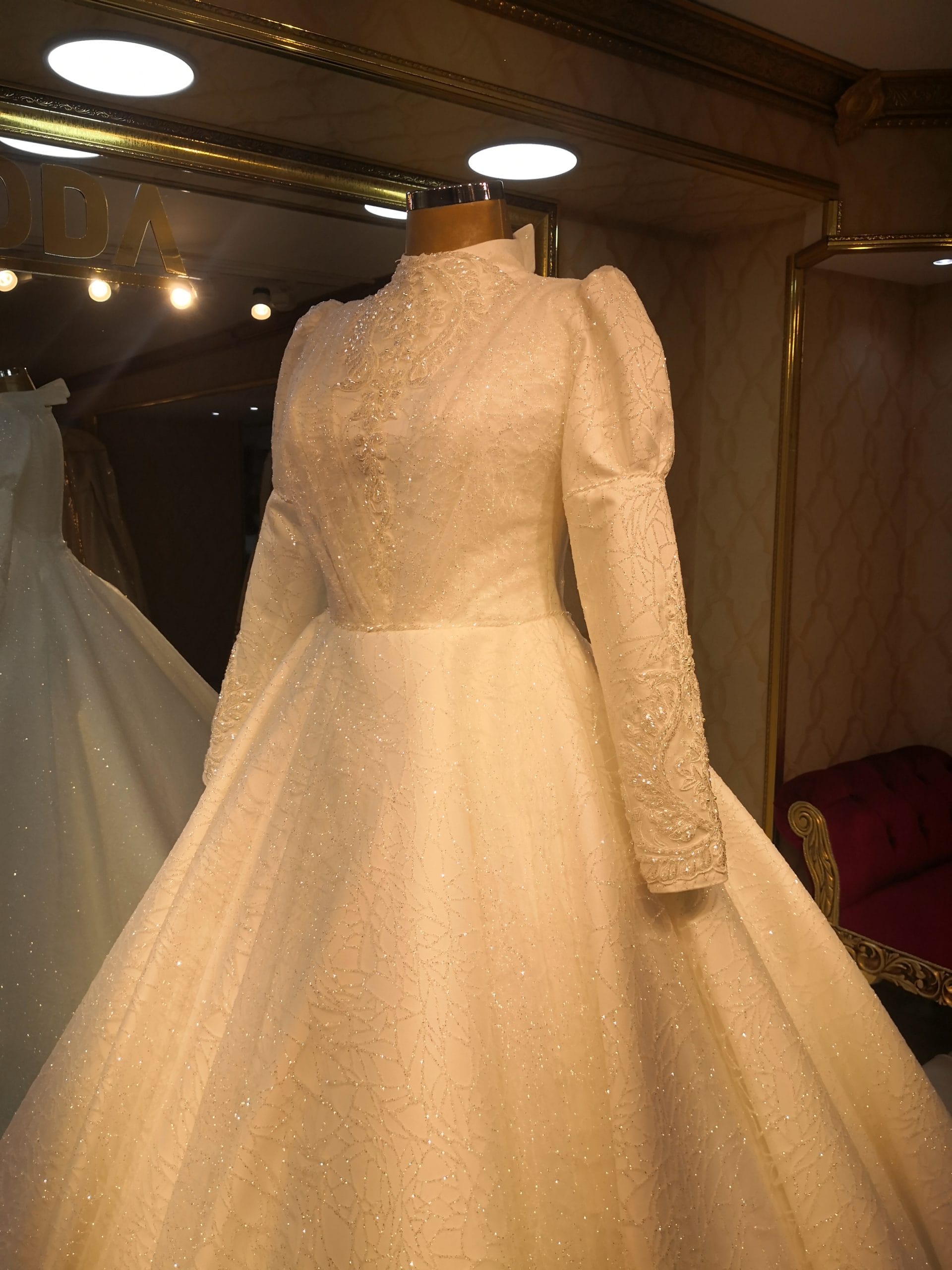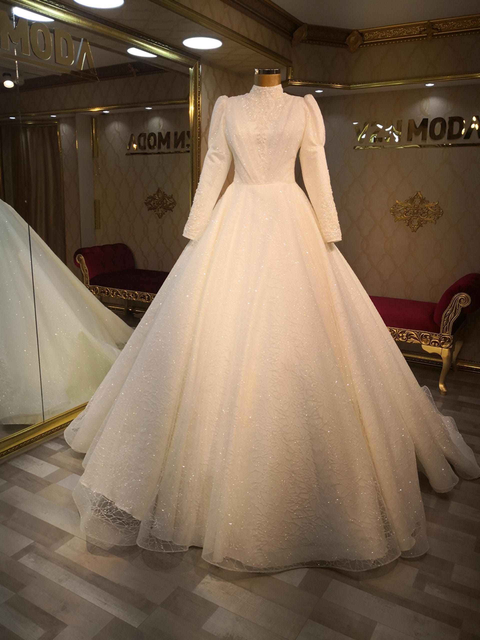 Firuze Model Simli Tesettür Gelinlik – Zarafetin Işıltısı
