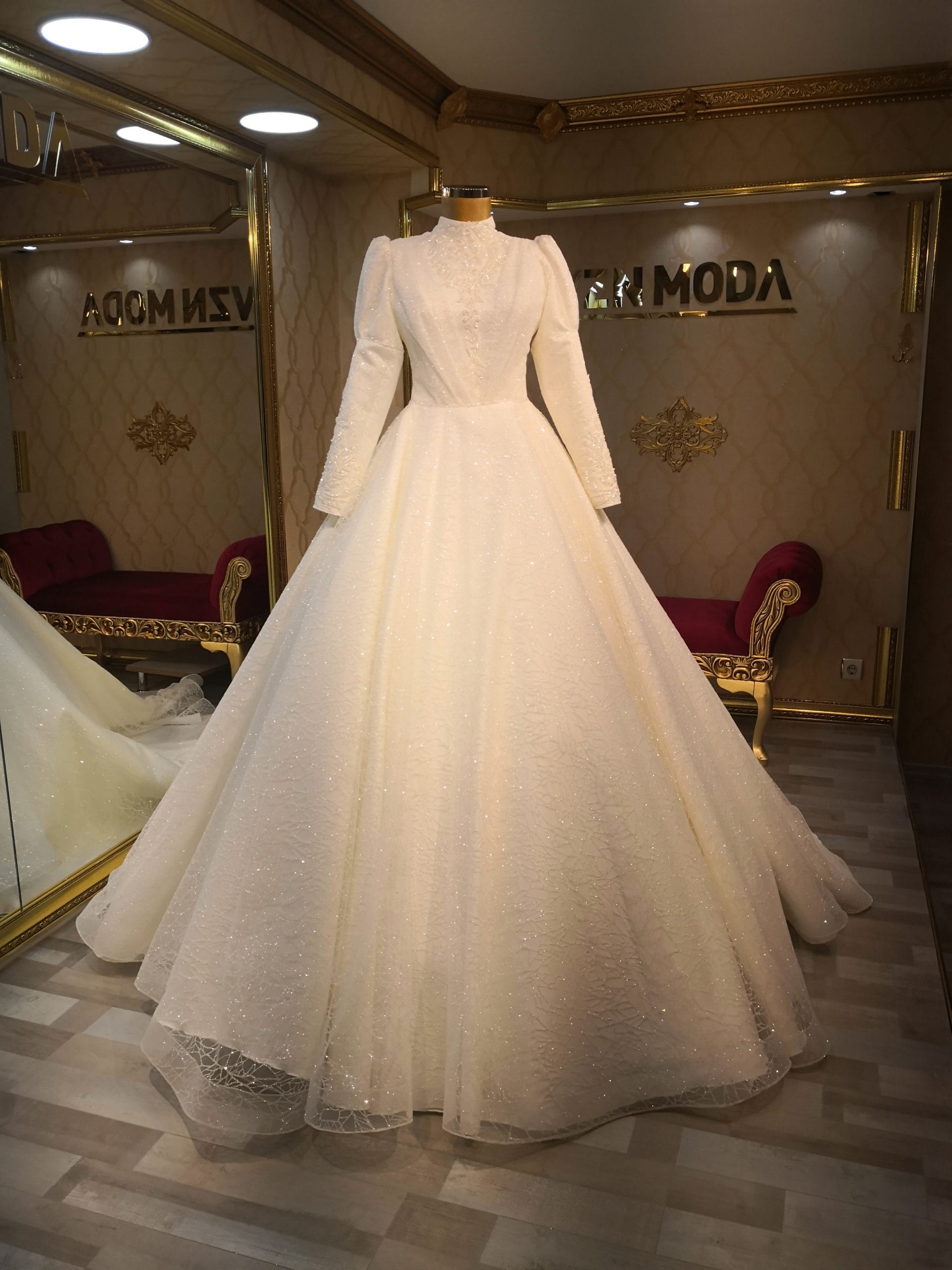 Düğün gününüzde hem muhafazakar tesettür çizgileri korumak hem de modern bir ışıltı saçmak istiyorsanız, Firuze Model tam size göre. Bu özel tasarım, A kesim formunun zarafetini, yüksek kaliteli Elegance simli kumaş ve hayal tül detaylarıyla birleştiriyor. vznmoda.com/gelinlik/