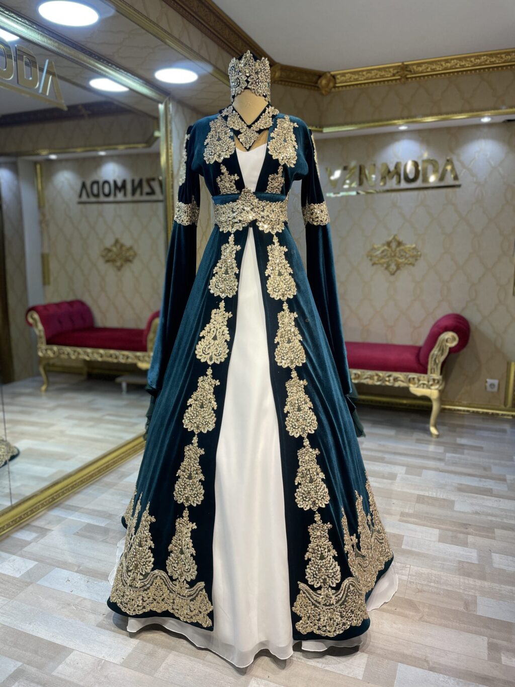 Tasarım: Yoğun gold sırma nakışlı, geleneksel saray stili.