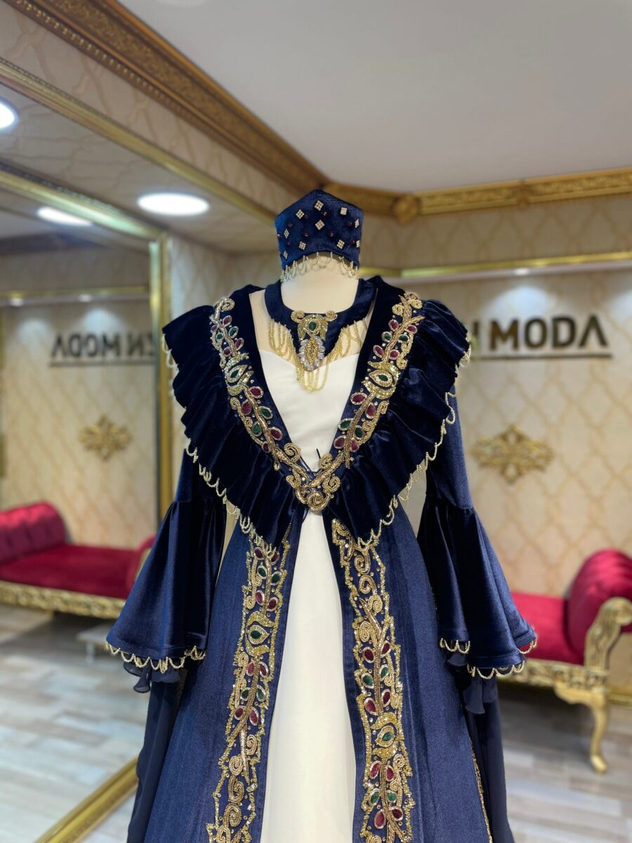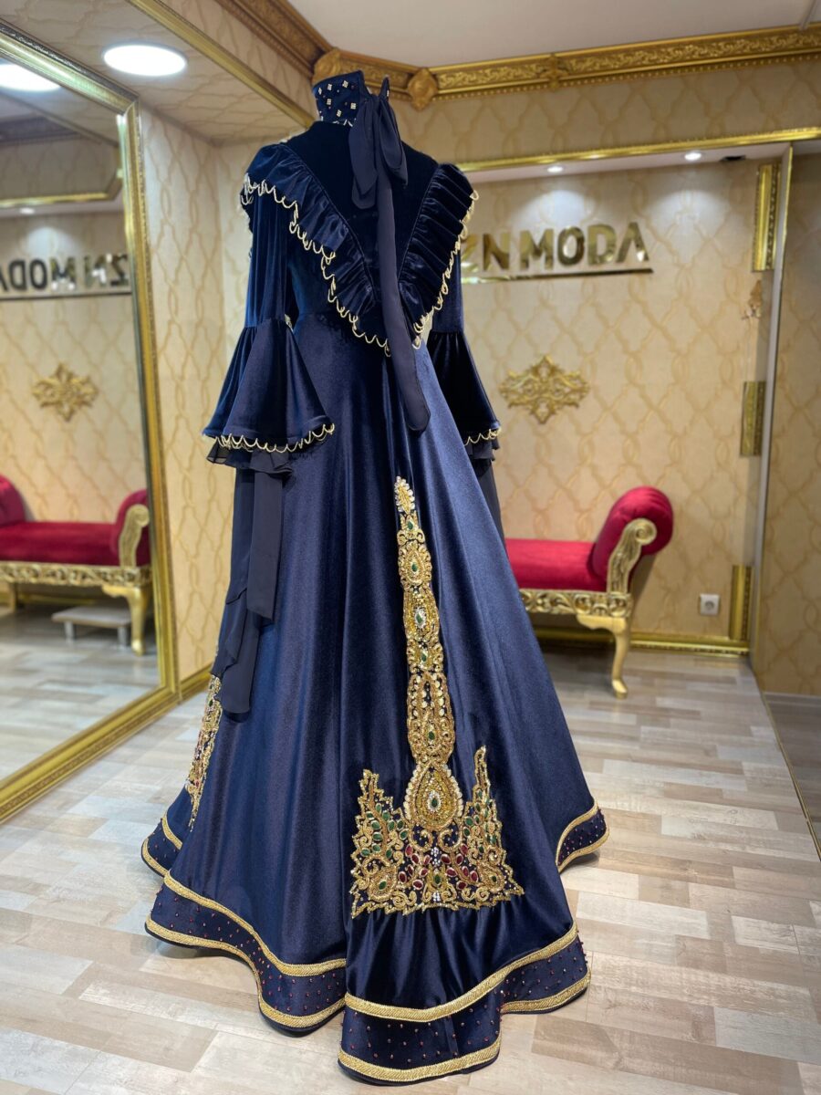 Hanzade lacivert Helen kınalık ile ışıldayın! Lacivertin asaleti ve VZN Moda kalitesiyle kına gecenizin yıldızı olun. Hemen inceleyin ve sipariş verin.