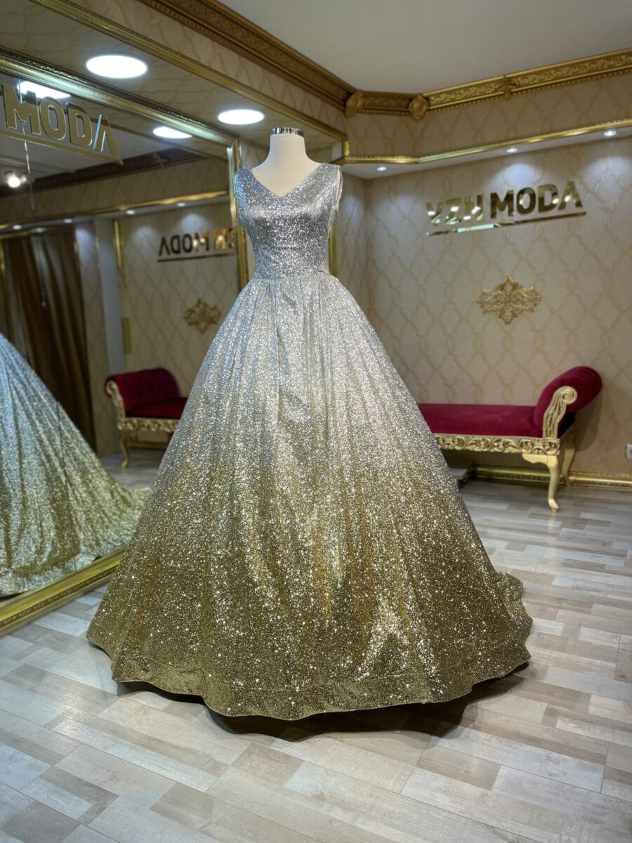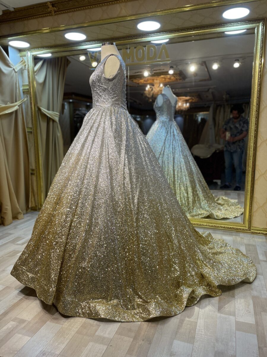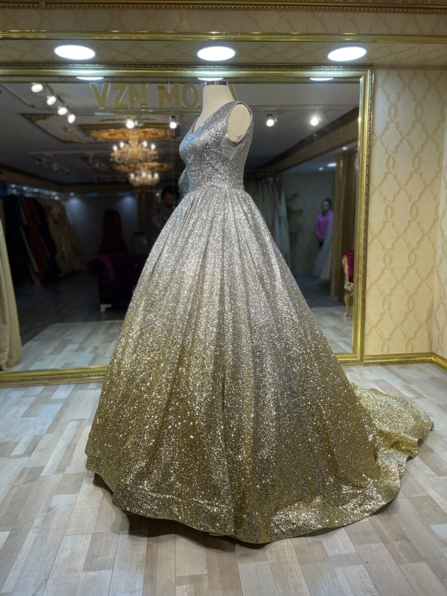Işıl Model simli A kesim nişanlık ve kınalık ile parlayın! Işıltılı kumaşı ve şık tasarımıyla en özel gecenizde VZN Moda zarafetini keşfedin. Hemen inceleyin.