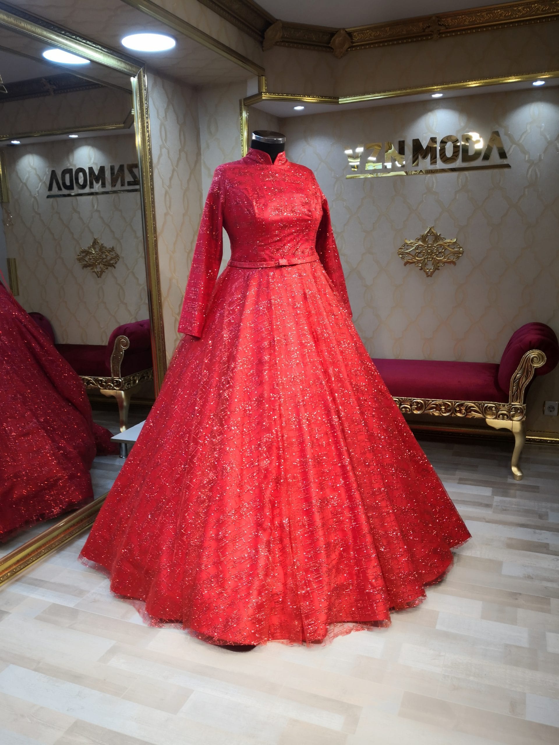 Neşe Model Kırmızı Tesettür Nişanlık Kınalık Abiye