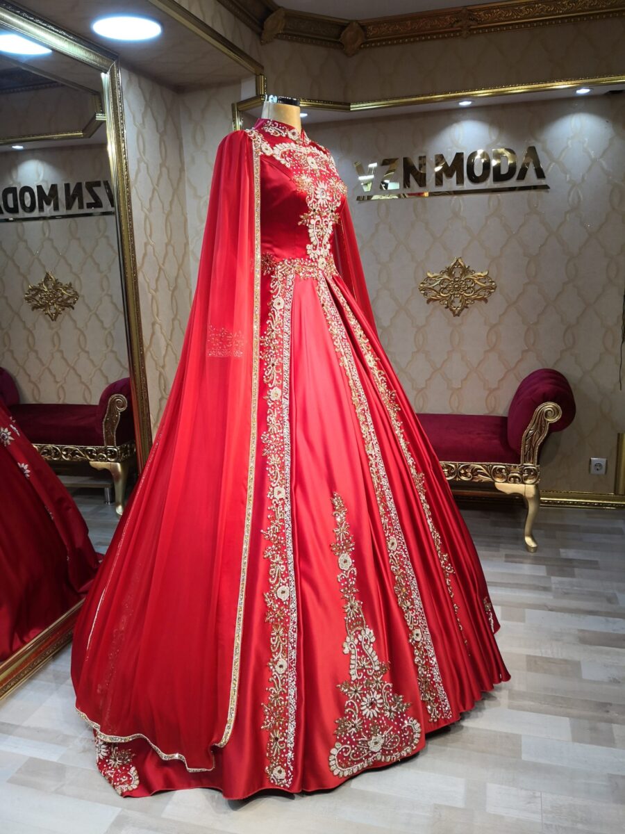 Zümrüt Kırmızı Nişan Kına Abiye Elbise