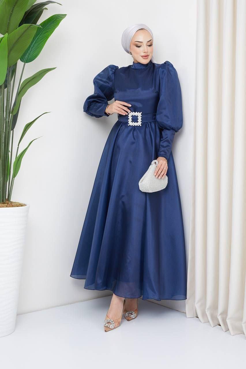 Azra Lacivert Tesettür Nişanlık Abiye Elbise
