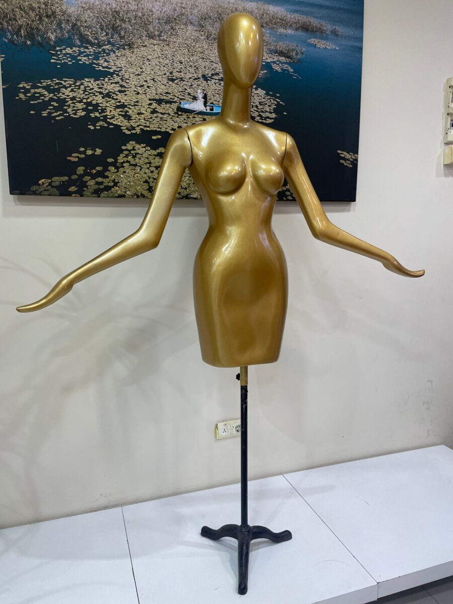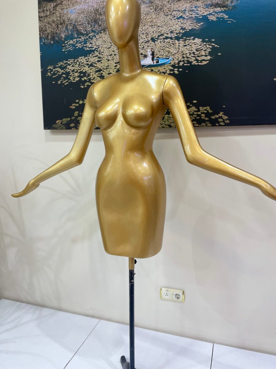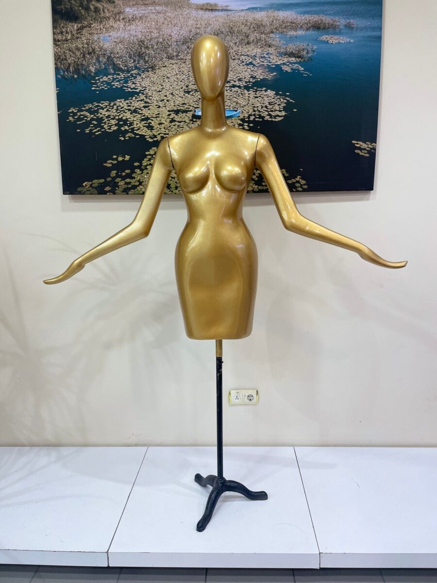 Mağazanızın veya stüdyo alanınızın atmosferini profesyonel bir görsellikle taçlandırın! Vitrin Manken Polyester Yarım Balık Beden Kollu, zarif balık beden formu ve gerçekçi kol detaylarıyla elbiselerinizin, özel tasarımlarınızın ya da günlük giyim koleksiyonlarınızın en şık şekilde sergilenmesini sağlar. Yarım balık beden yapısı sayesinde vitrin dekorasyonunda, prova çalışmasında ve çekimlerde büyük kolaylık sunar.